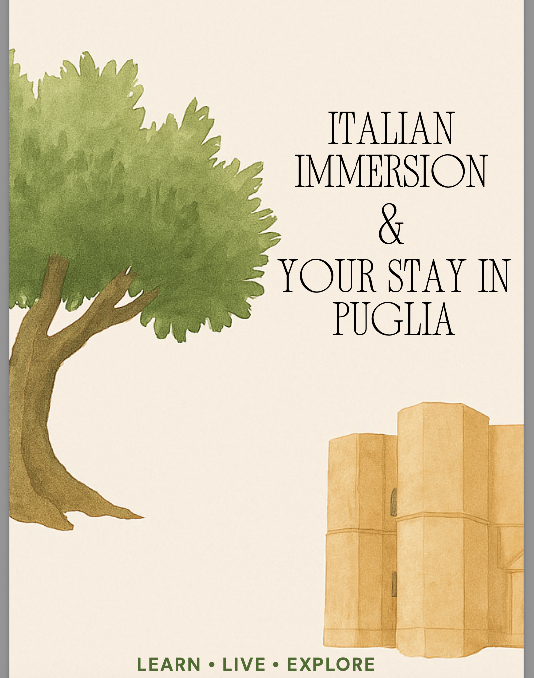 Our small and personalized immersion program allows you to stay in a welcoming home in Puglia, practice Italian in real-life situations, and explore beautiful nearby towns like Trani, Barletta, and Bari.